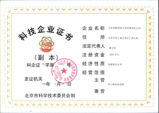 北京市新建企業(yè)“雙愛雙評”活動先進企業(yè) 高新技術企業(yè)認定證書