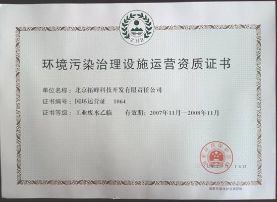 科技企業(yè)證書 環(huán)境污染治理設施運營資質(zhì)證書